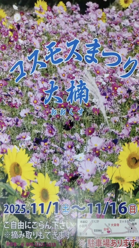 駐車場 | コスモス畑付近・道沿い(35.188513, 140.282226) |